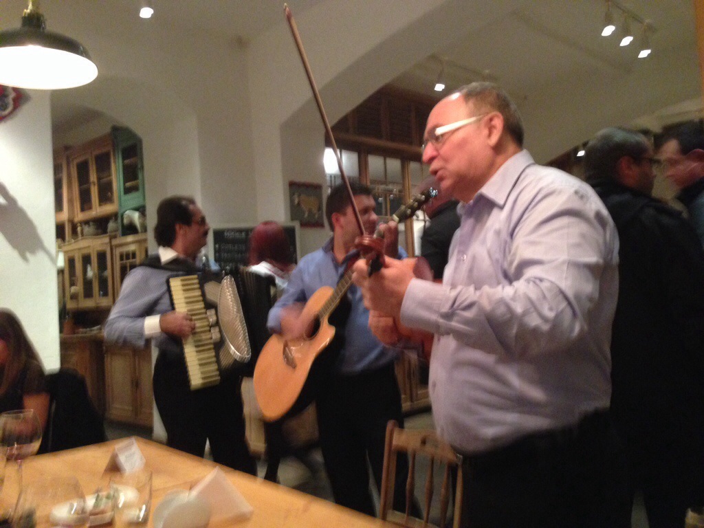 Lacrimi si Sfinti offers a wine experience beyond compare, with an impressive list of whites and reds from the owner’s personal vineyard. We selected the Cabernet and it was a perfect accompaniment to my goose, lamb and white bean stew and Lexx’s ram pastrami and polenta. To conclude our feast, the waiter brought us two vials of Romanian tuica. A digestif, the experience of drinking tuica pretty much like drinking paint thinner. Still, I’m sure we’ll acquire a taste for it by the time we come home.